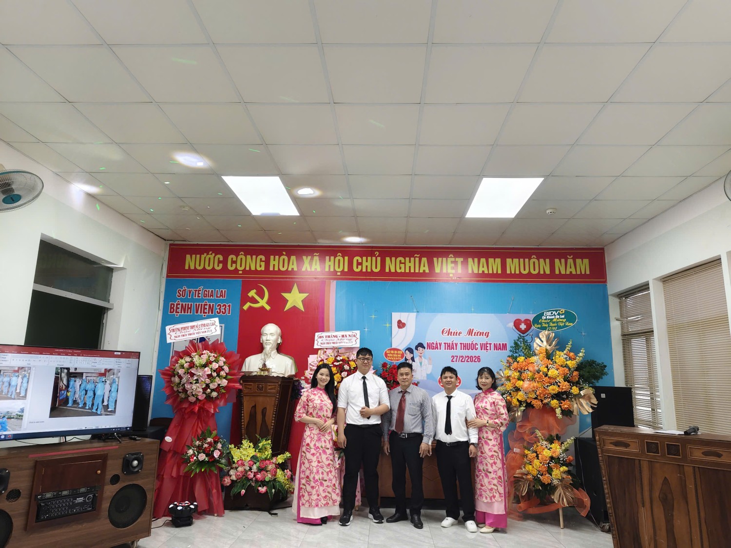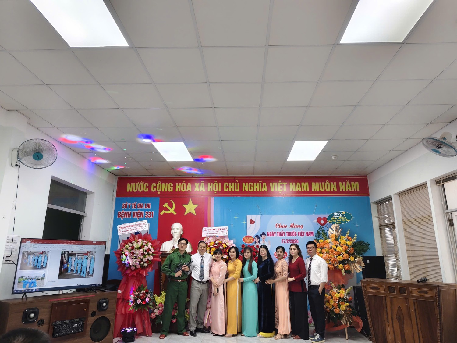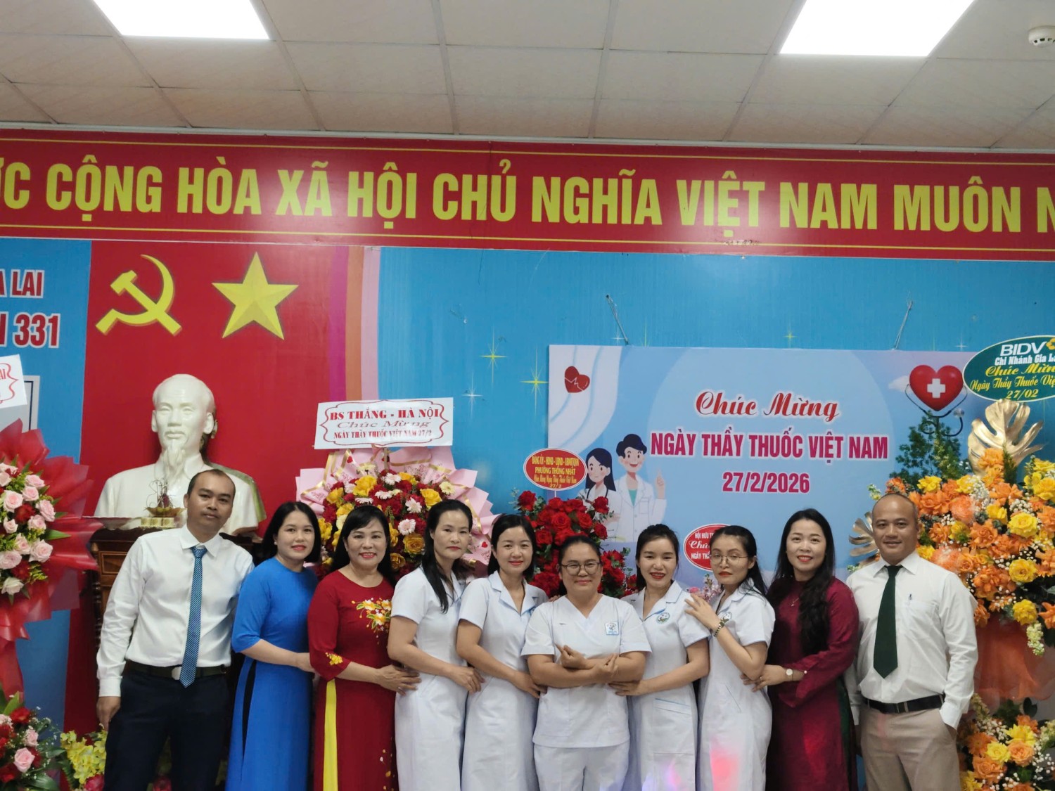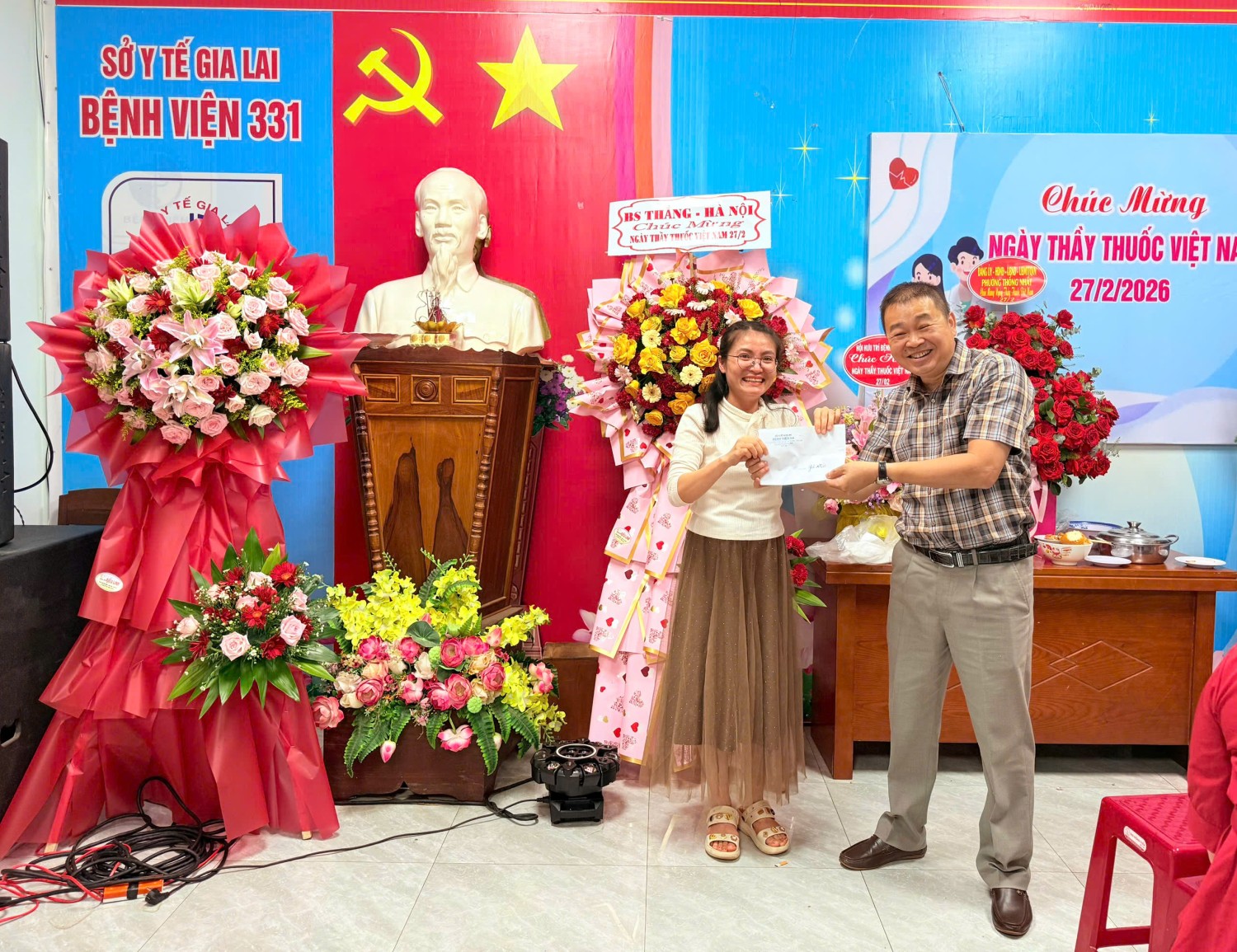Tham dự chương trình có Ban Giám đốc bệnh viện, lãnh đạo các khoa, phòng cùng đông đảo cán bộ, viên chức, người lao động đang công tác tại đơn vị. Đặc biệt trân trọng cảm ơn sự tham gia của lãnh đạo Sở Y tế tỉnh Gia Lai; UBND phường Thống Nhất, hội Hưu trí Bệnh viện 331, các cơ quan, doanh nghiệp… đã dành thời gian đến thăm, động viên đội ngũ thầy thuốc của bệnh viện, cùng những lẵng hoa tươi thắm và những lời chúc mừng tốt đẹp.