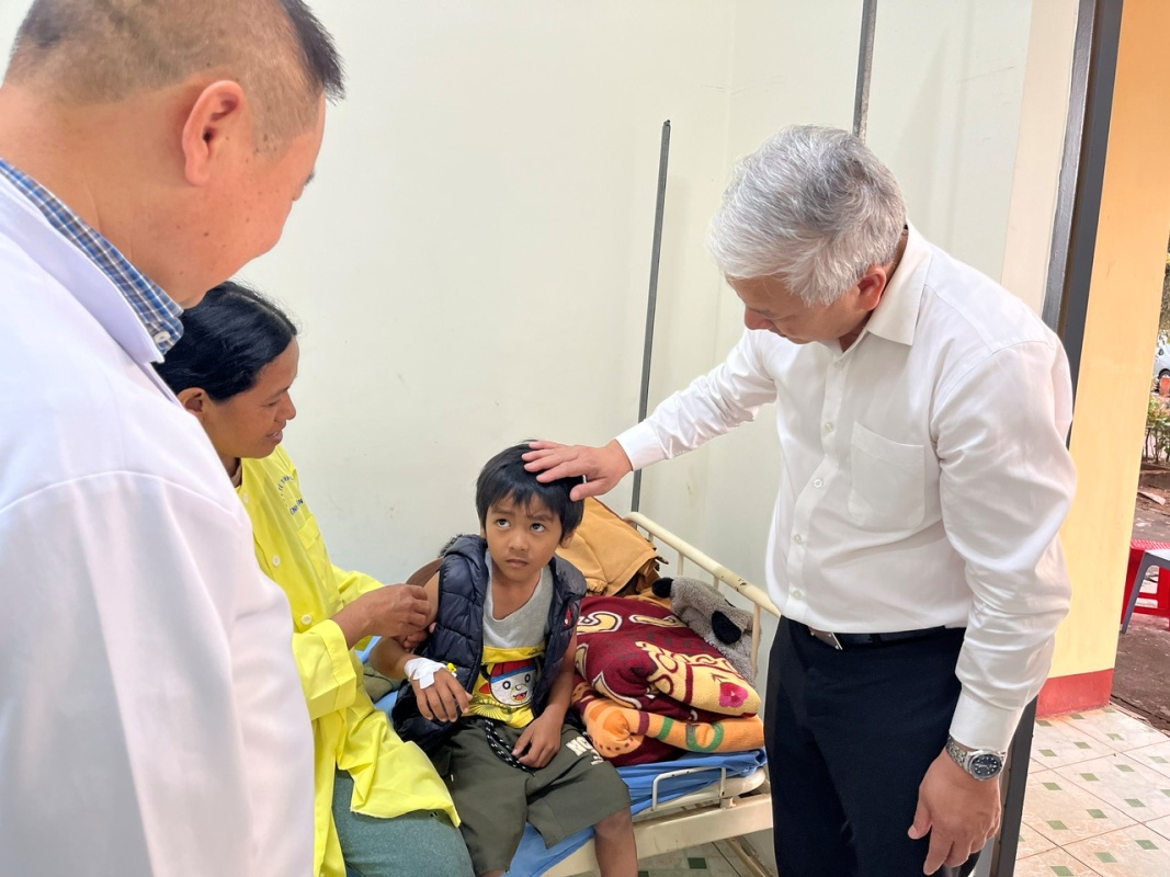 Trong chuyến thăm, đồng chí cũng trực tiếp thăm hỏi, động viên các bệnh nhân đang điều trị nội trú, trao quà Tết của Tỉnh và gửi lời chúc các bệnh nhân sớm hồi phục sức khỏe, đón Xuân an khang, sum vầy bên gia đình.